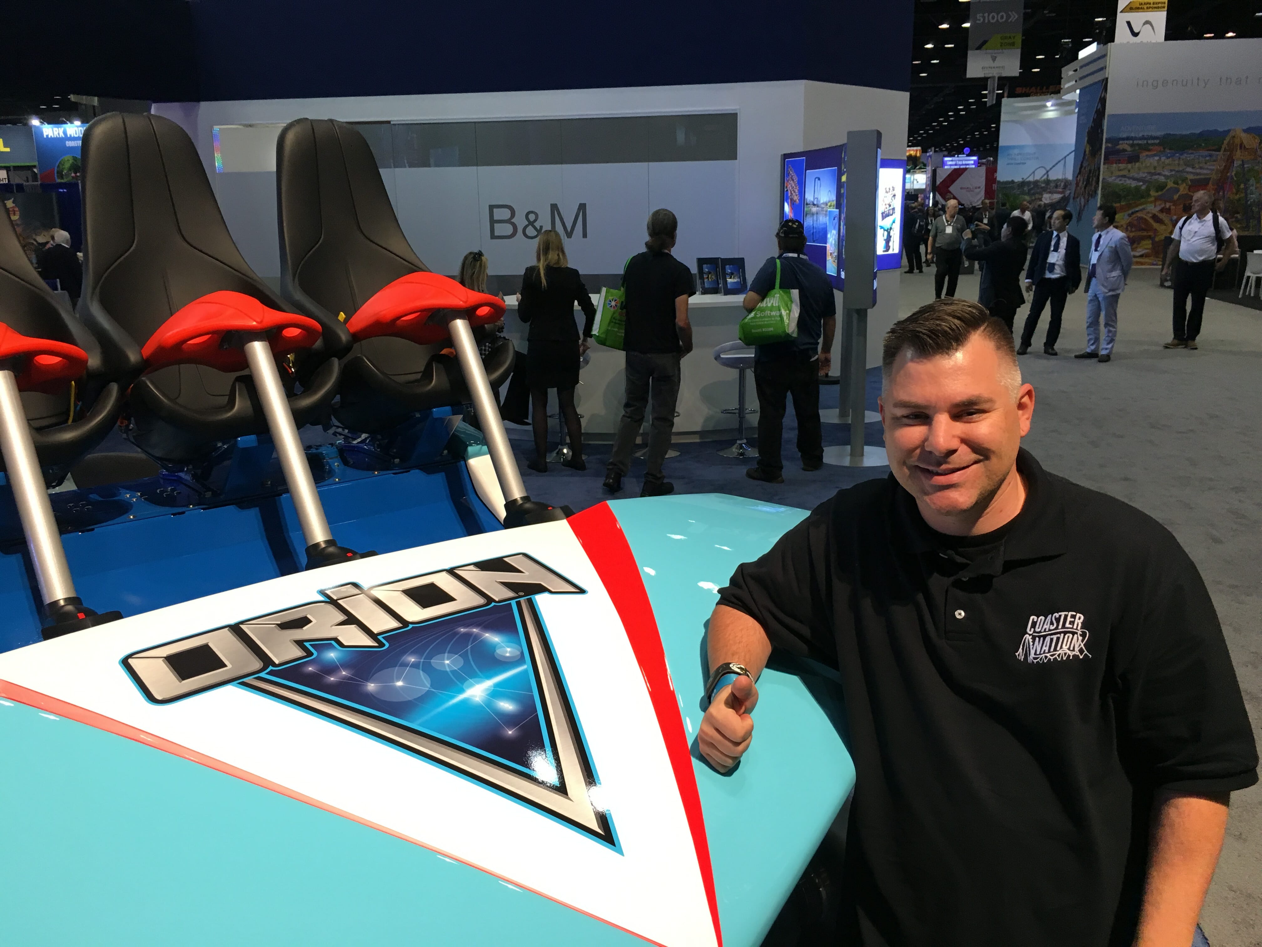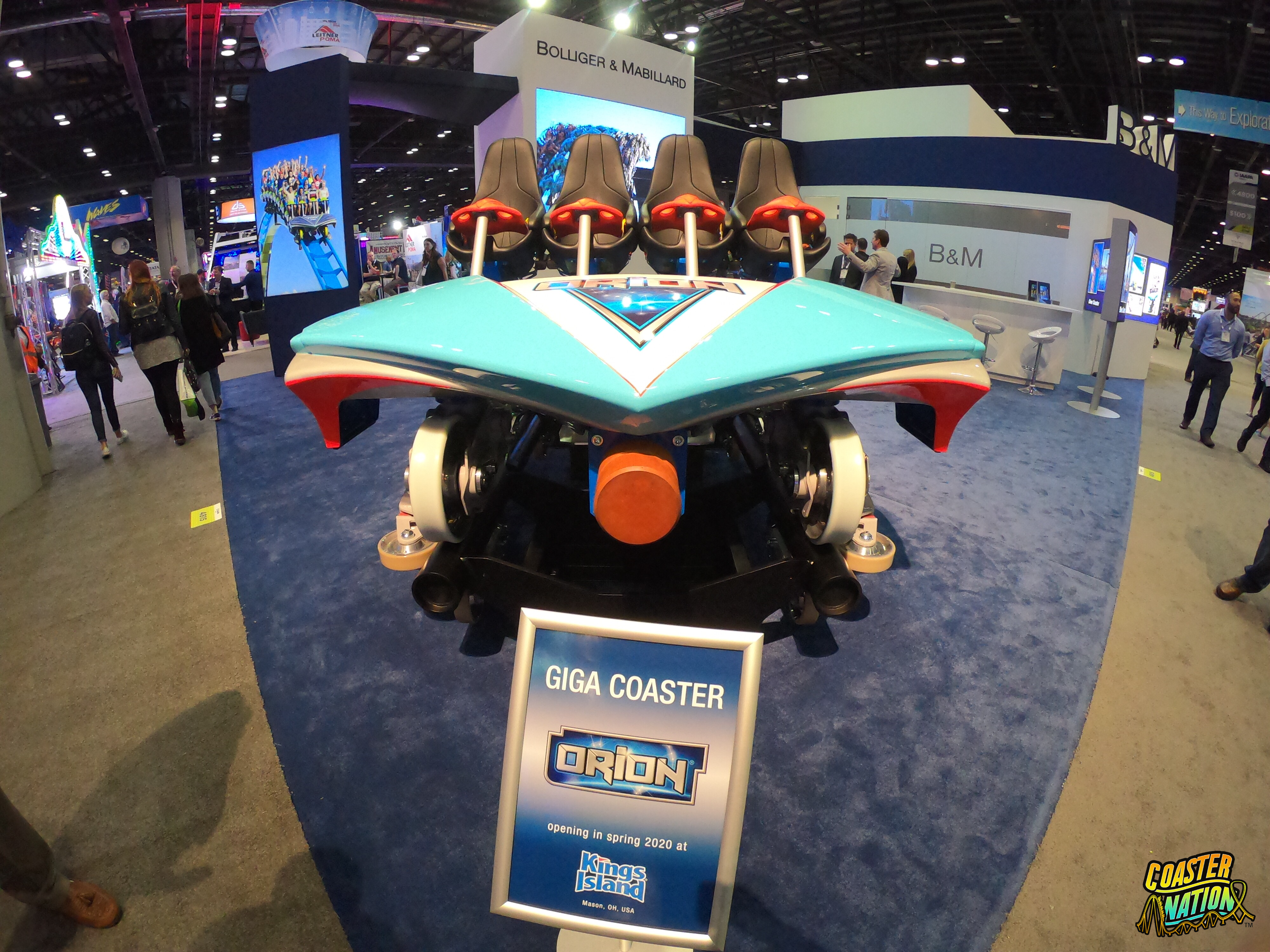 This morning, media and industry leaders gathered around the Bolliger and Mabillard booth at the IAAPA Expo in Orlando as the inventors and designers of Kings Island’s ground-breaking roller coaster Orion, displayed the ride’s first vehicle.