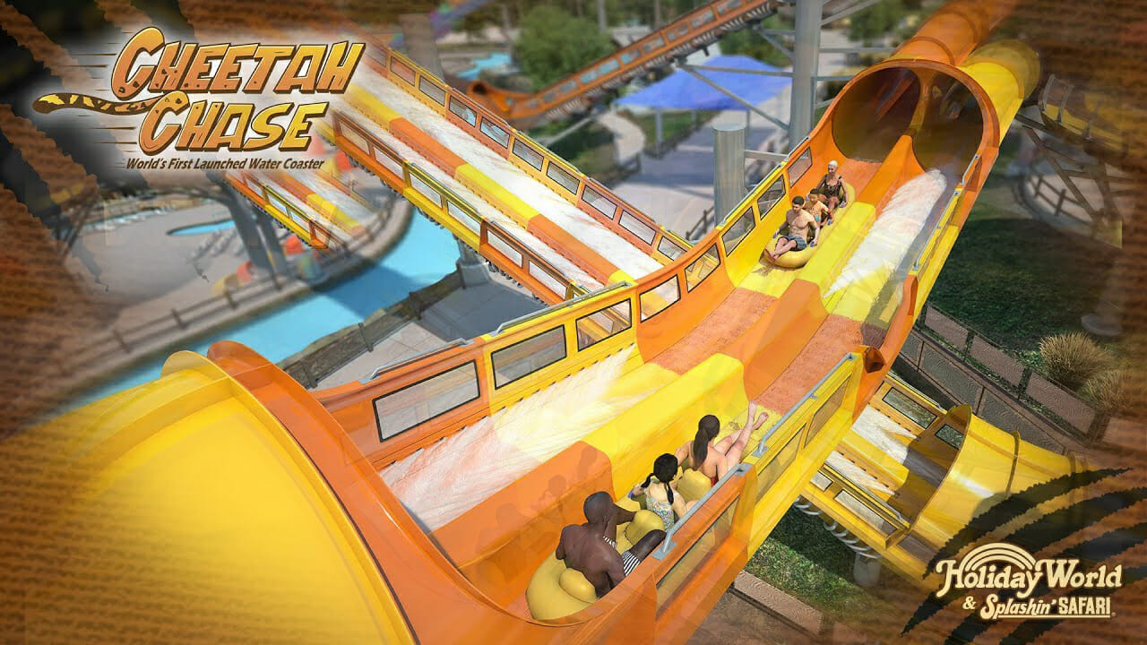 After lots of teases and speculation, Holiday World & Splashin’ Safari has officially announced Cheetah Chase – an all new Racing Launched Water Coaster for 2020!