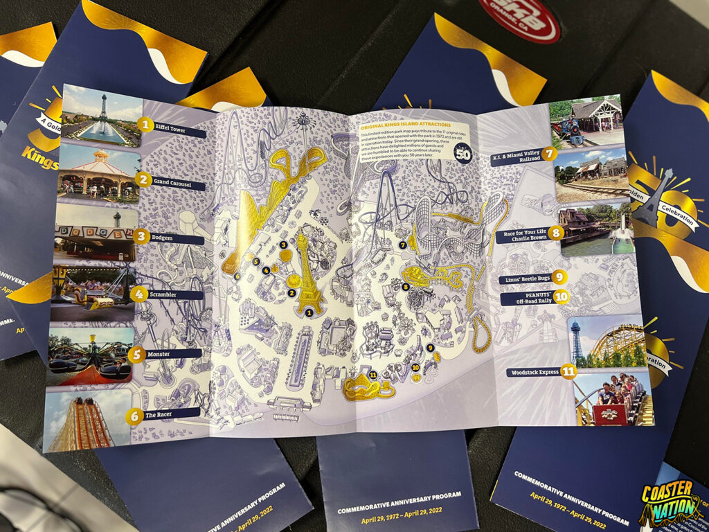 The park guide included a map of the original attractions from opening day at Kings Island. If you missed out, you’re in luck! We have extras and will be giving some of these away on our socials.