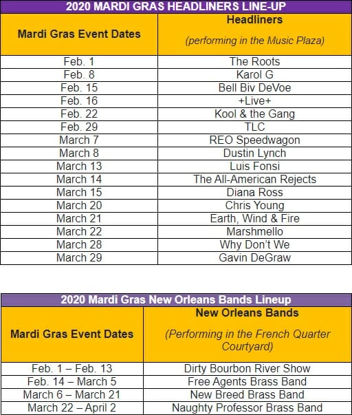 Today, Universal Orlando Resort announced the concert headliners performing at the 25th annual Mardi Gras celebration – a family-friendly version of the iconic Big Easy bash that features a spectacular nightly parade, authentic Cajun-style cuisine and – on select nights – live concerts by a star-studded lineup of musical artists.
