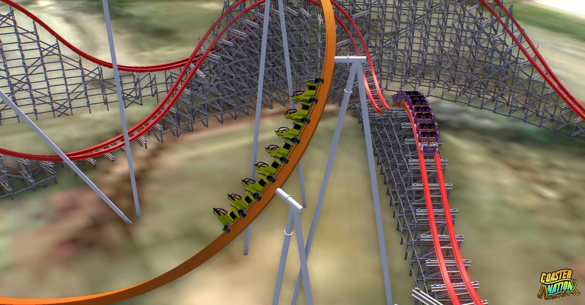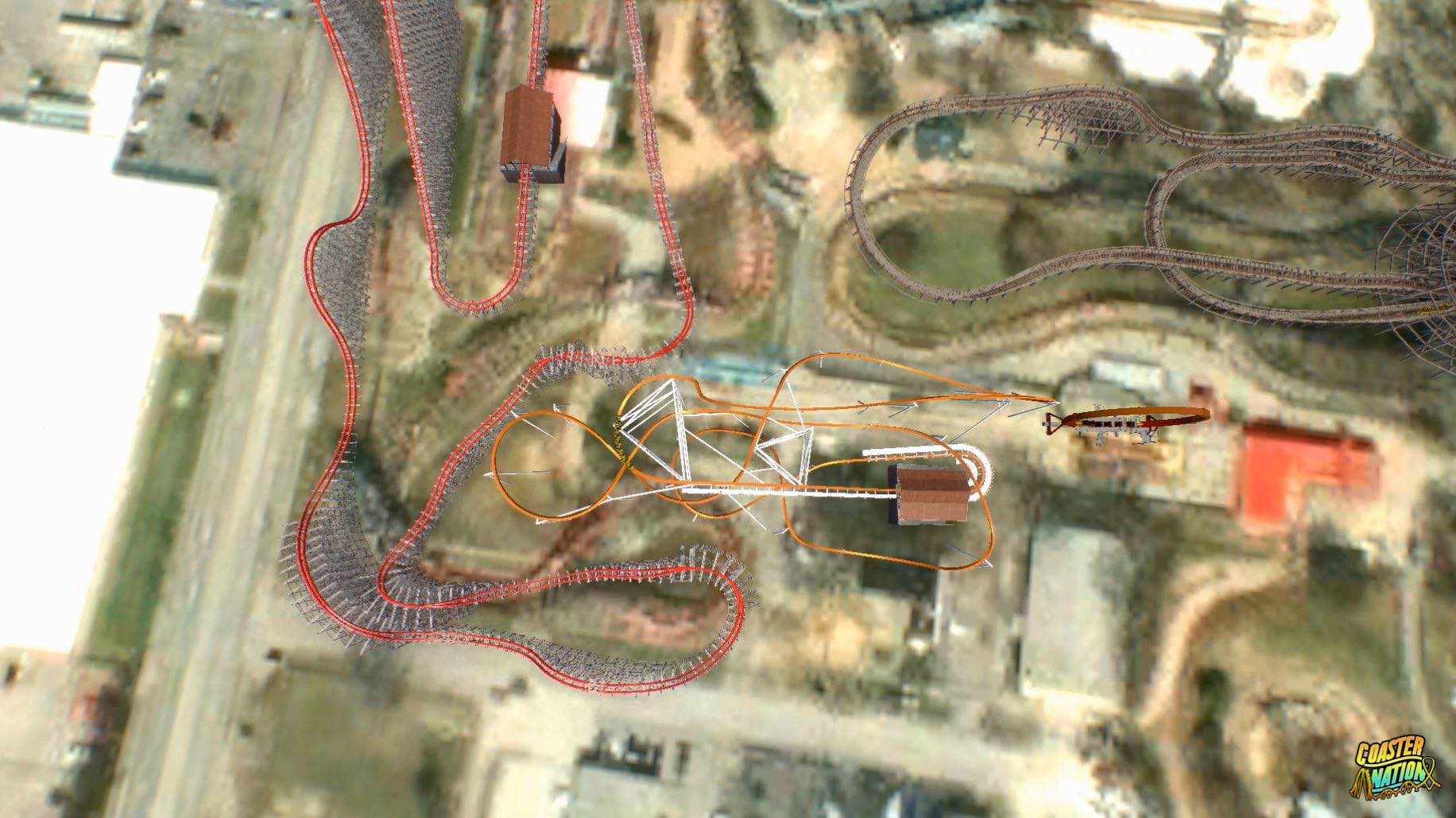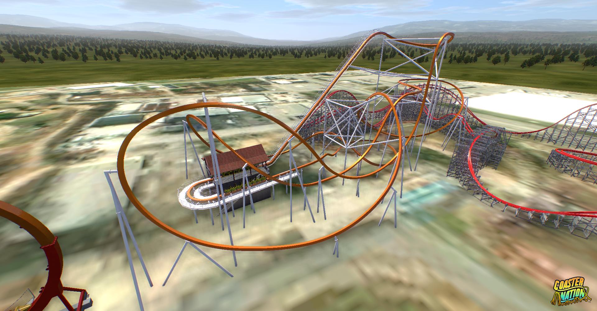 Documentation provided for construction of the similar Railblazer coaster at California’s Great Adventures is nearly identical. Paperwork was filed for 3 other sections of the ride (likely consisting of the dive loop, iconic high speed s turn, and inverted stall). Using the provided heights and the location, we can obtain a good idea of what the ride would look like.