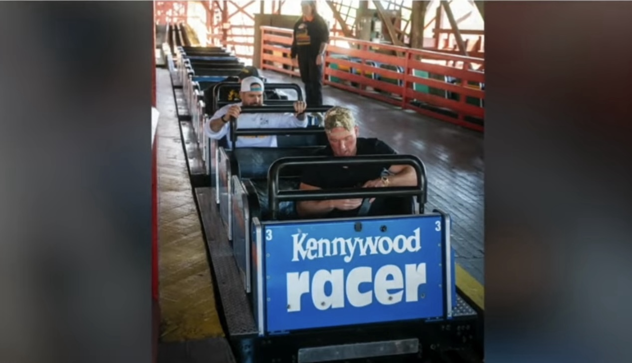 Pat McAfee rides The Racer at Kennywood. Image courtesy Herschend Entertainment.