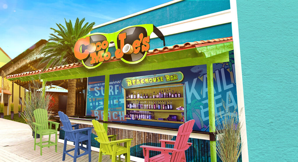 - Cocomo Joe’s and Sandbar – These two walk-up bar locations inspire an energetic beach vibe thanks to new, vibrant colors and textures added in to the bar’s seating and backdrops.