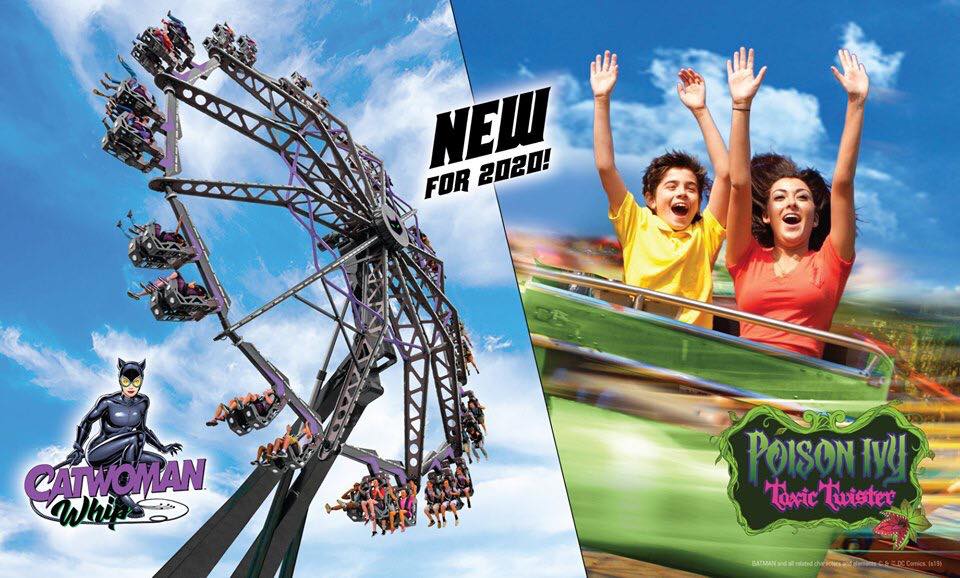 • Six Flags Over Georgia, the Thrill Capital of the South—introduces two devious villain attractions in the all-new Gotham City. Thrill-seekers will spin wildly on Catwoman Whip while suspended from her twirling wheel of chaos. Riders are raised by a giant arm, feet dangling, and are launched into a high-speed spin…round and round…seven stories toward the sky. Also new for 2020, Poison Ivy Toxic Twister will send riders through a classic scramble that puts a new twist on spinning.