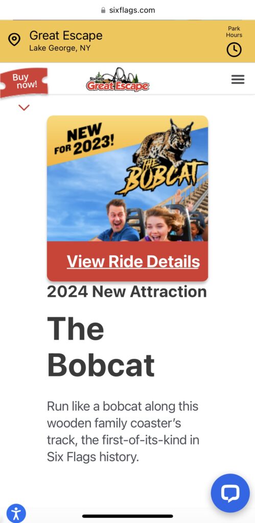 Pending Town of Queensbury approval, The Bobcat will begin its prowl in the spring of 2024, just in time for the park’s 70th anniversary celebration. A perfect complement to the fabled Comet, The Bobcat will provide the unique feel of a quintessential wooden coaster, introducing thrill-seekers to quick turns, spunky drops and heart-pumping excitement aboard a custom, state-of-the-art, themed train.