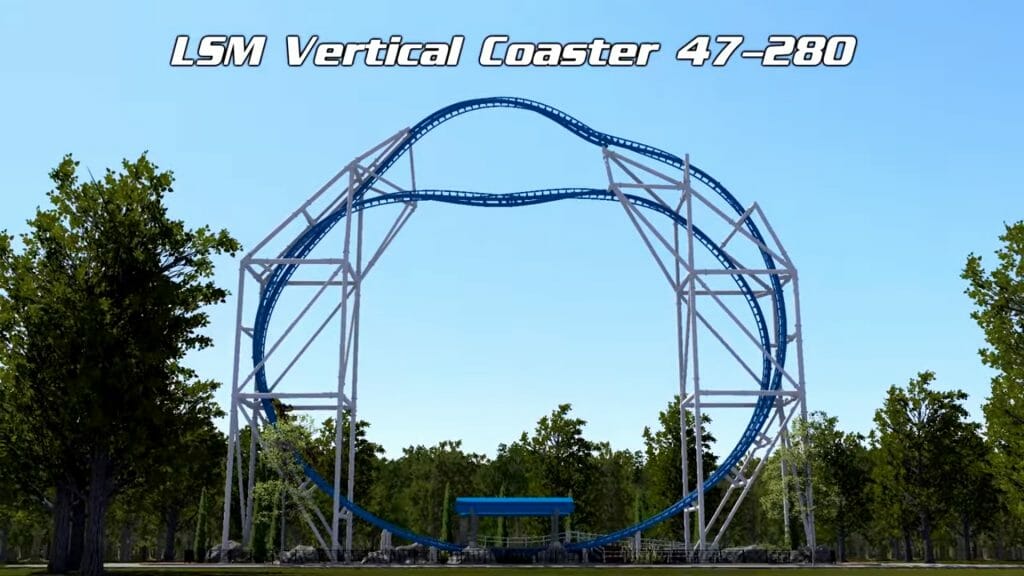 The third concept announced by Intamin was the LSM Vertical Coaster. The main features of this ride is it’s compact footprint and upside down launch.